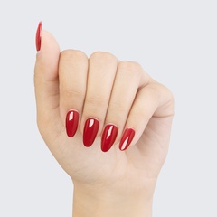 Strawberry red. “Classic”. Medium. Opaque. Cold undertone.
